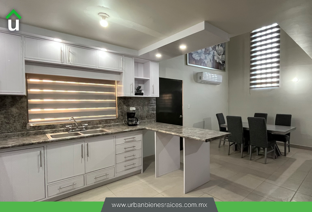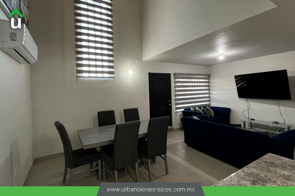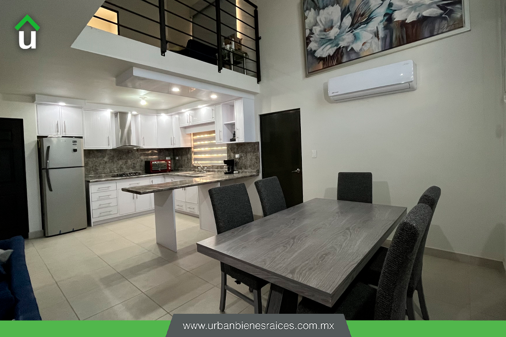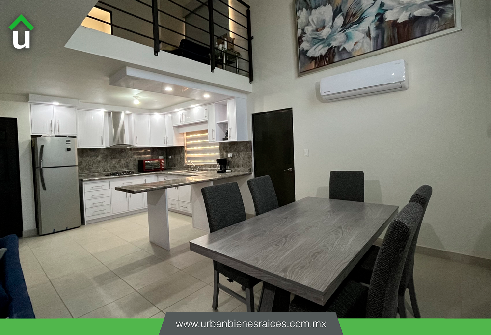Sala, cocina y comedor con concepto abierto